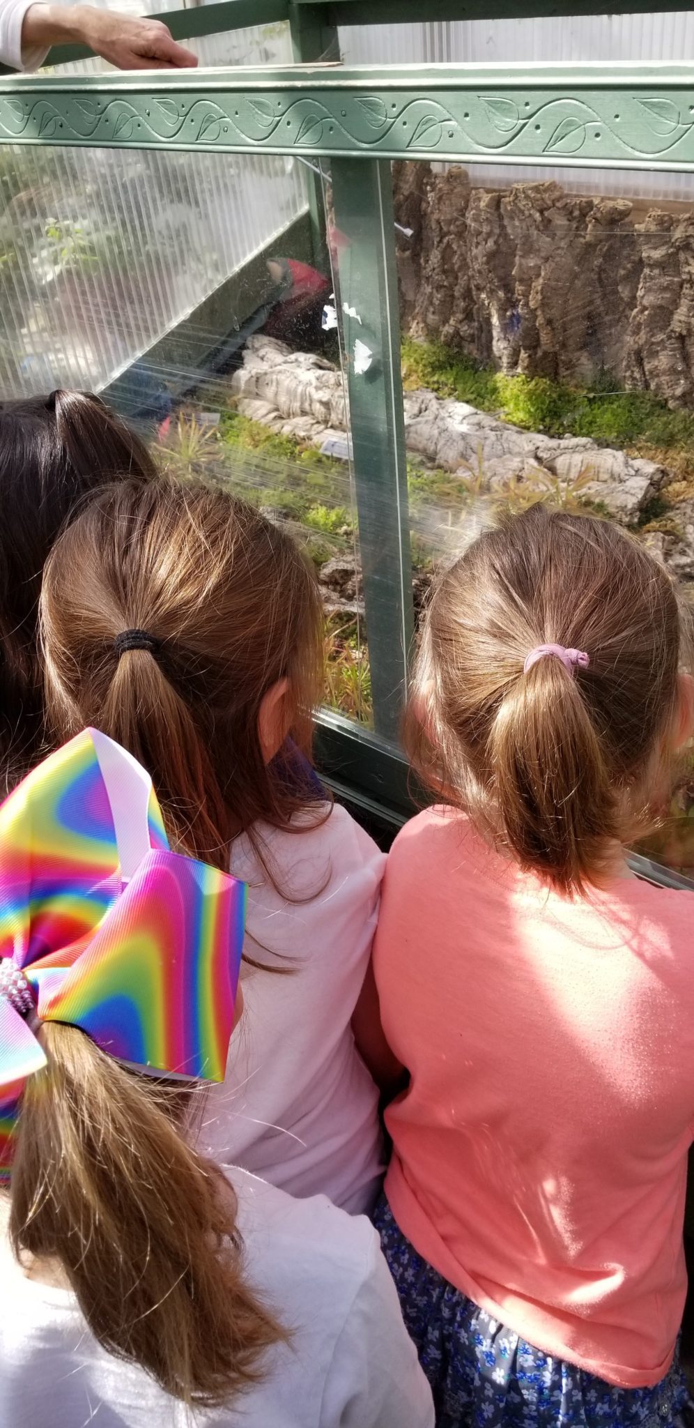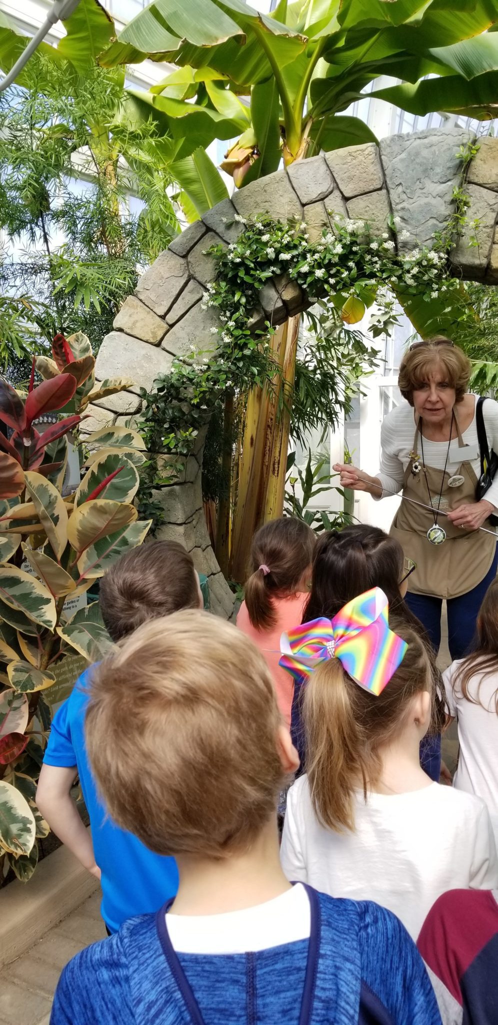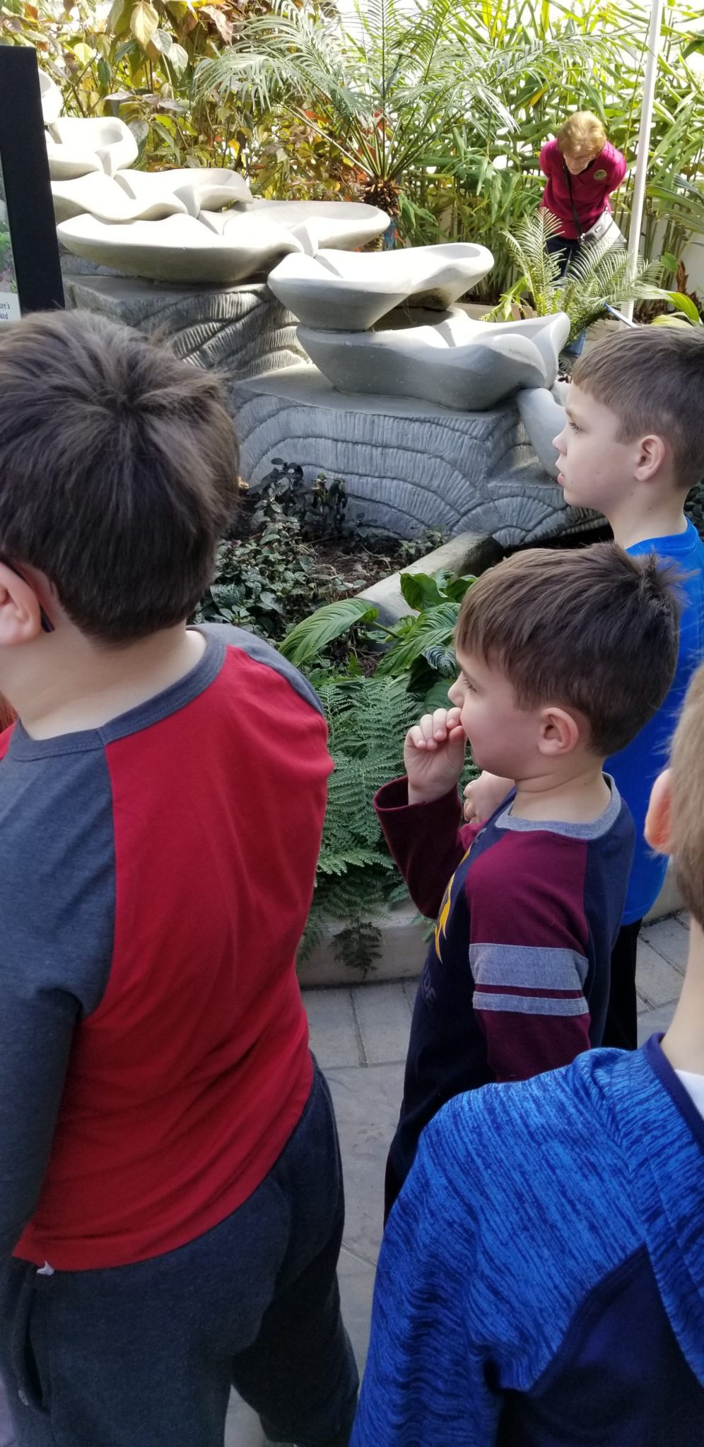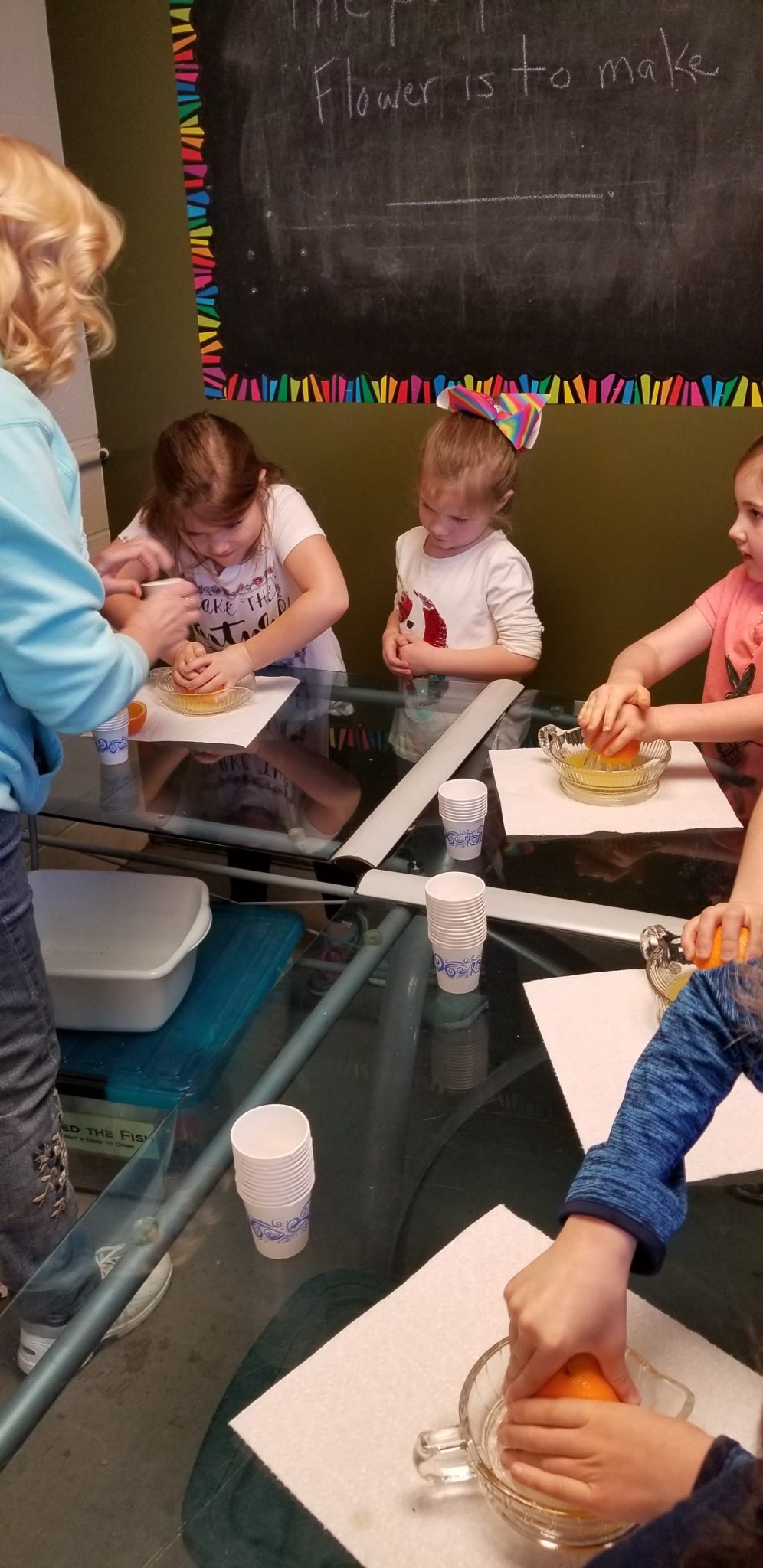 Today, students in kindergarten and 1st grade visited the Botanical Gardens! We toured the gardens and then learned about seeds, fruits, and vegetables. We ground wheat into flour, squeezed and tasted orange juice, and chopped carrots for a compost pile.