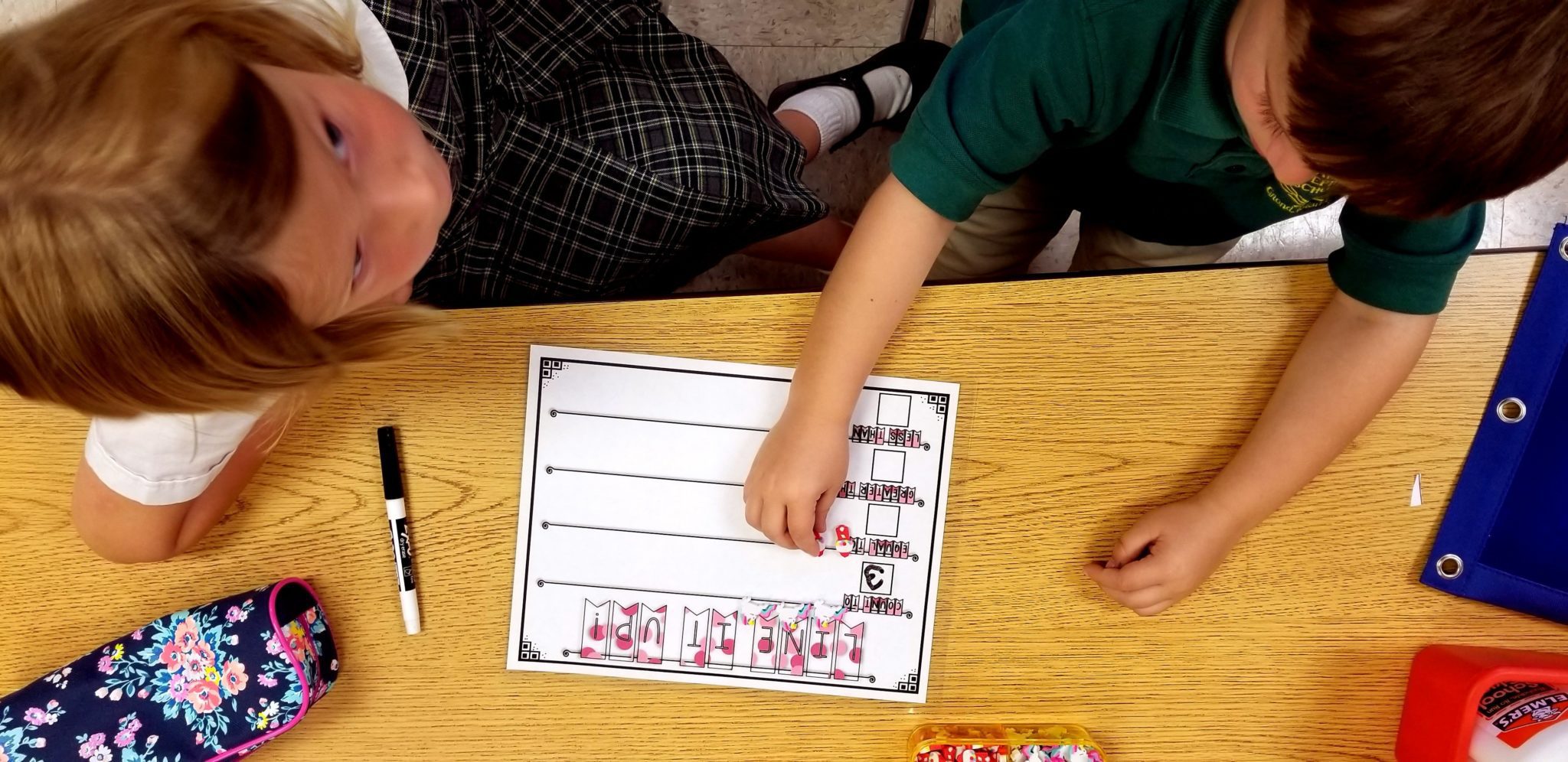 Yes we can! Today we worked in pairs or trios and used mini erasers to show equal groups up to 5. You can practice this concept at home with coins, small toys, buttons, or snacks.