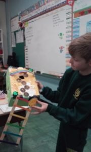 First graders set out to catch a Leprechaun or two by creating individually designed and created traps. This is STREAM based, often incorporating knowledge of simple machines to catch those pesky little green guys and gals. Student presented their traps and the thought process that went into their creations.