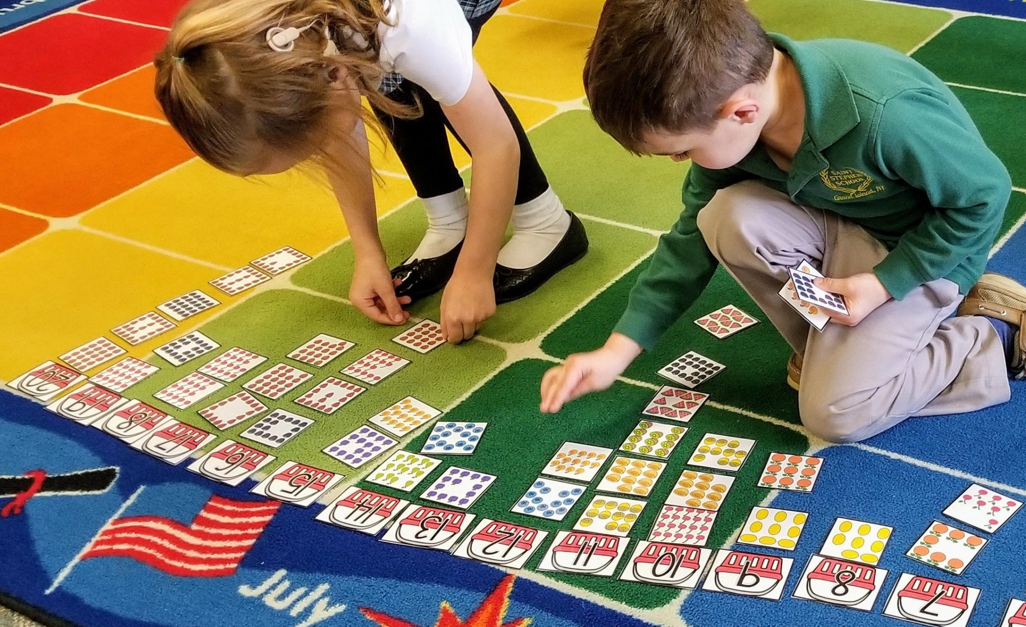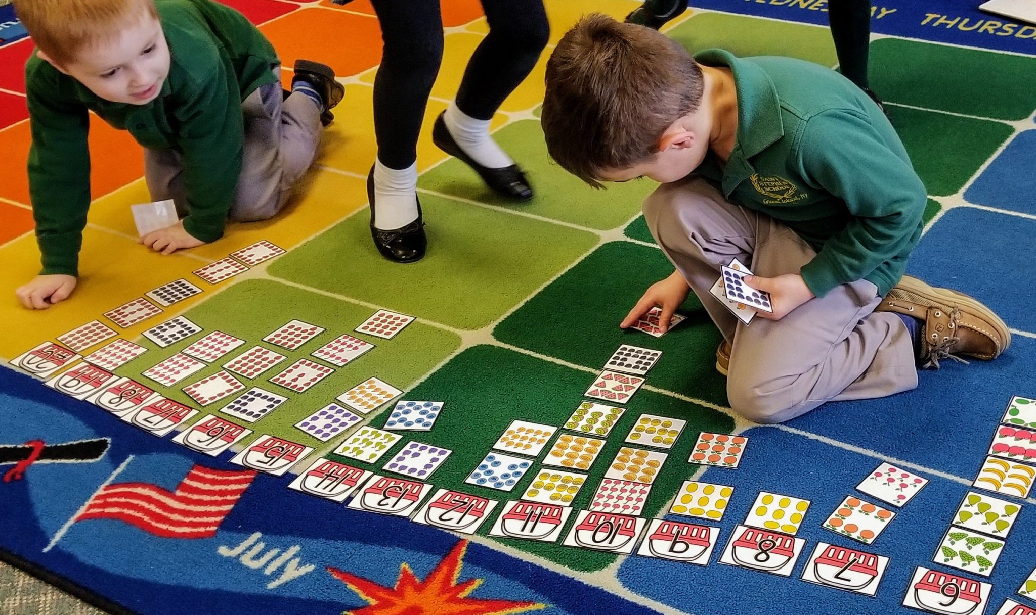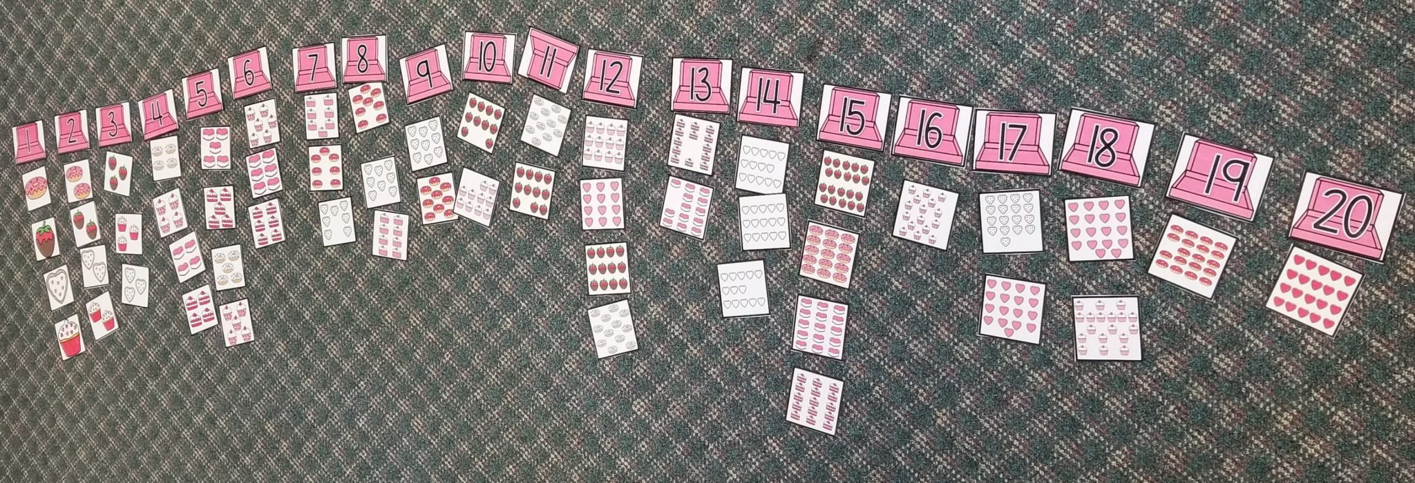 In math, we have been sorting objects by size, shape, color, or other similar characteristic. Today we practiced sorting by count. We split into teams and put numbers in order, from 1-20. Then, we counted groups of objects on picture cards and placed them under matching number. After our first sort, we went back and fixed our mistakes.